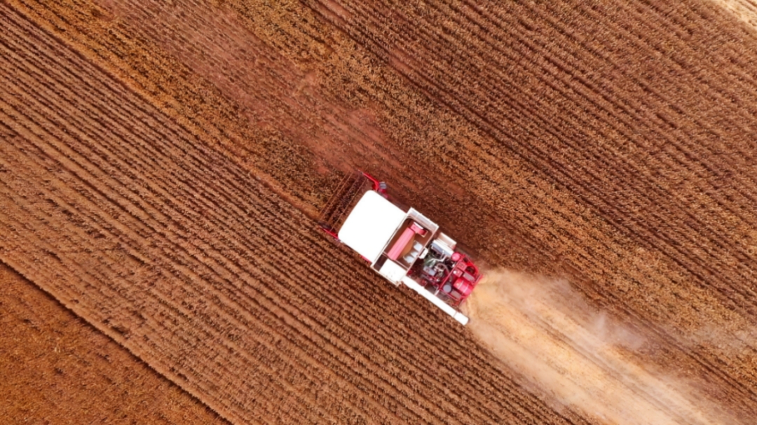 ▲山東省棗莊市市中區(qū)夏糧收割現(xiàn)場(chǎng)