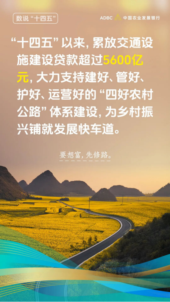 編者按:“十四五”以來,中國農(nóng)業(yè)發(fā)展銀行堅決貫徹落實黨中央、國務院決策部署,持續(xù)完善服務國家戰(zhàn)略的響應機制,堅守農(nóng)業(yè)政策性銀行主責主業(yè),引導支農(nóng)資金投向國家重大戰(zhàn)略、重點領(lǐng)域和薄弱環(huán)節(jié),扎實做好有農(nóng)發(fā)行特色的“五篇大文章”,金融支農(nóng)力度不斷加大,為推進鄉(xiāng)村全面振興作出了積極貢獻。在“十四五”的收官之年,農(nóng)發(fā)行微信公眾號策劃推出“數(shù)說十四五”圖文專題,通過一組組數(shù)據(jù),向您介紹農(nóng)發(fā)行堅定踐行金融工作政治性人民性,全力服務國家戰(zhàn)略和“三農(nóng)”發(fā)展取得的顯著成效。