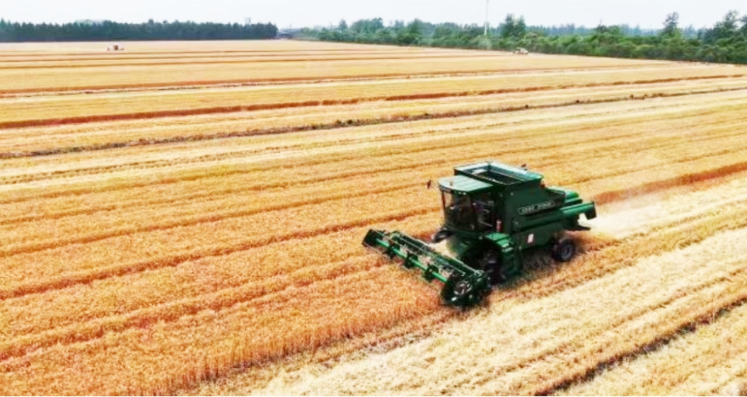 ▲紅旗種業(yè)基地機(jī)械化稻麥?zhǔn)崭瞵F(xiàn)場(chǎng)