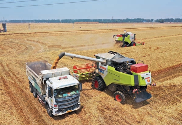 農(nóng)發(fā)行河北省分行支持的金沙河農(nóng)業(yè)合作社在收割小麥。