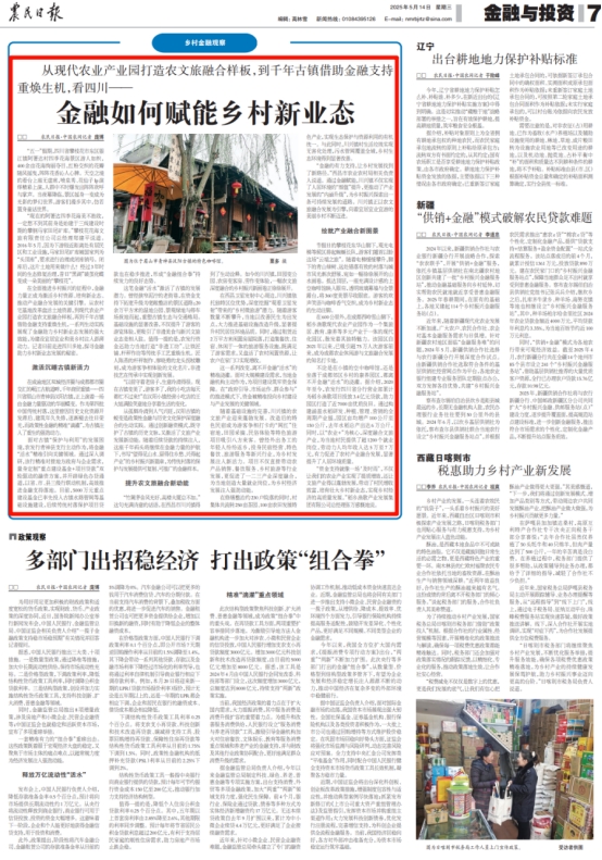 在全面推進鄉(xiāng)村振興的征程中,金融力量正成為激活鄉(xiāng)村資源、培育新業(yè)態(tài)、推動產(chǎn)業(yè)融合發(fā)展的關鍵引擎。從農村宅基地改革盤活土地資源,到現(xiàn)代農業(yè)產(chǎn)業(yè)園打造農文旅融合樣板,再到千年古鎮(zhèn)借助金融支持重煥生機,一系列生動實踐展現(xiàn)了金融助力鄉(xiāng)村新業(yè)態(tài)發(fā)展的強大效能,為建設宜居宜業(yè)和美鄉(xiāng)村注入澎湃動力。記者日前走進四川多地,探尋金融助力鄉(xiāng)村新業(yè)態(tài)發(fā)展的秘密。